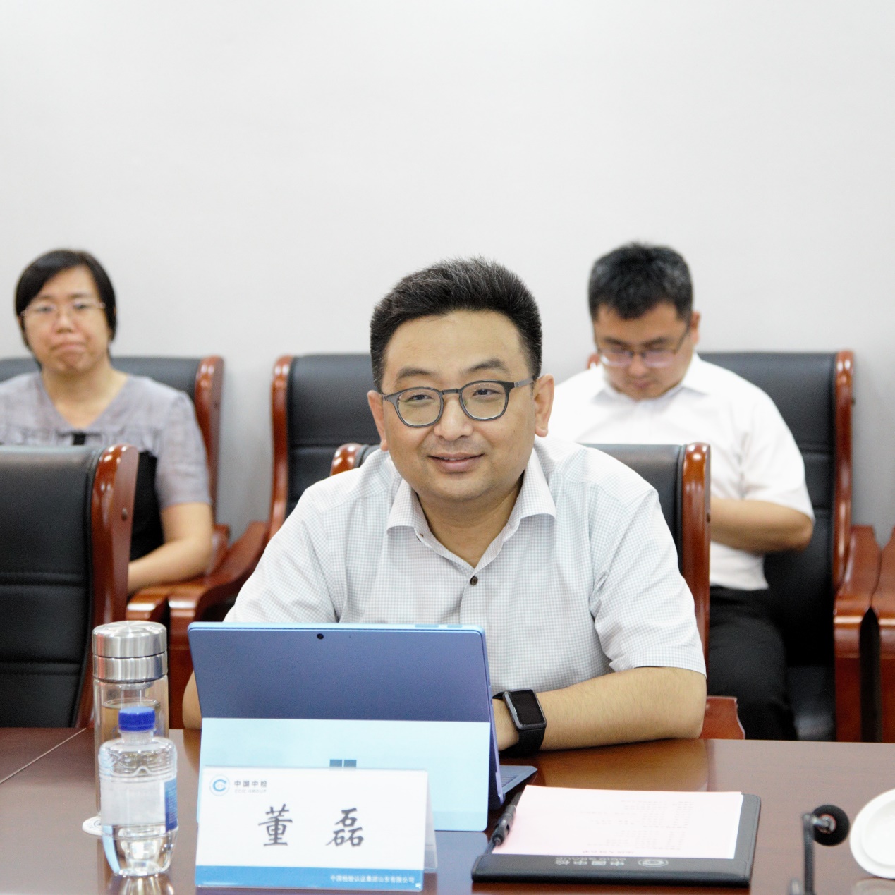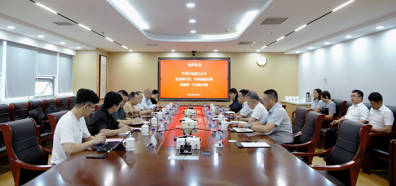 8月20日,中國(guó)中檢浙江公司黨委副書記、常務(wù)副總經(jīng)理劉燕波一行到山東公司調(diào)研,同山東公司黨委書記、董事長(zhǎng)、總經(jīng)理董磊舉行座談。浙江公司黨委委員、副總經(jīng)理徐亮、李波,山東公司班子成員及雙方相關(guān)部門負(fù)責(zé)人參加座談。