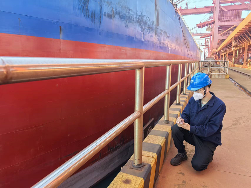 在國(guó)慶假期期間,黃島公司新員工李星潤(rùn)在為滿(mǎn)載39萬(wàn)噸鐵礦石的“遠(yuǎn)識(shí)?!弊鏊哂?jì)重檢驗(yàn),他作為新入職的青年檢驗(yàn)員,在經(jīng)驗(yàn)豐富的老檢驗(yàn)員的傳幫帶下,這一年除了適應(yīng)了工作崗位的要求,熟練掌握了檢驗(yàn)技能,并且還通過(guò)了考試取得了上崗授權(quán),可以獨(dú)立完成水尺計(jì)重檢驗(yàn)任務(wù)。