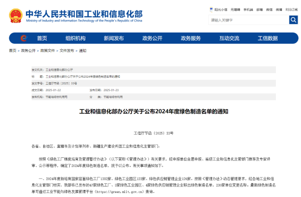 1月23日,工業(yè)和信息化部辦公廳發(fā)布了《工業(yè)和信息化部辦公廳關(guān)于公布2024年度綠色制造單位名單的通知》。在本年度的綠色制造單位創(chuàng)建和申報(bào)中,中國(guó)中檢山東公司助力多家企業(yè)順利入選國(guó)家級(jí)綠色工廠。