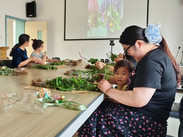 隨后開展的親子艾草花束制作環(huán)節(jié),將活動(dòng)氛圍推向高潮。公司工會(huì)經(jīng)前期精心籌備,準(zhǔn)備了艾草植株、色彩多樣的裝飾材料及設(shè)計(jì)精美的包裝材料。在主持人的講解與分步示范下,每一個(gè)親子家庭都有序開展了艾草修剪、造型設(shè)計(jì)、裝飾包裝等制作流程。