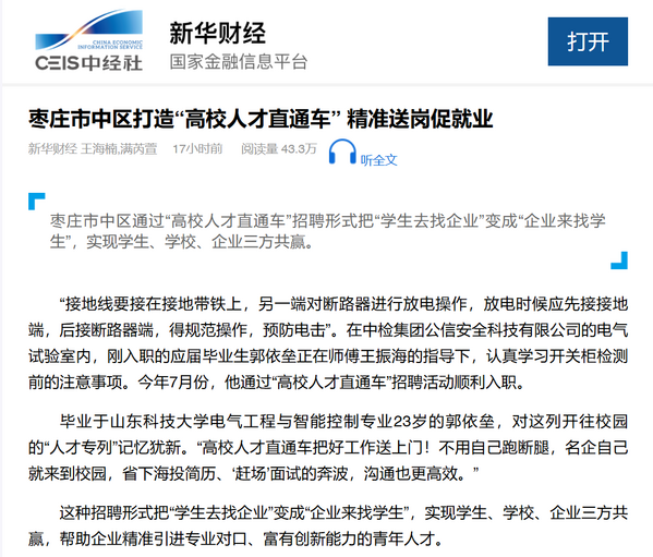 近日,中檢公信引才工作獲新華財經(jīng)網(wǎng)專題報道,進(jìn)一步提升了中檢公信的知名度和美譽度。
