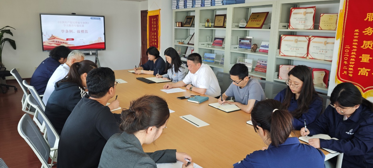 本次專題黨課以現(xiàn)場+線上方式開展,通過學習,支部全體黨員表示將進一步嚴守紀律,知敬畏、存戒懼、守底線;不行不義之舉、不謀不義之財,清清白白做人、干干凈凈做事,切實把學習成效轉化為遵規(guī)守紀、做好本職工作、推動公司高質量發(fā)展的強勁動力。